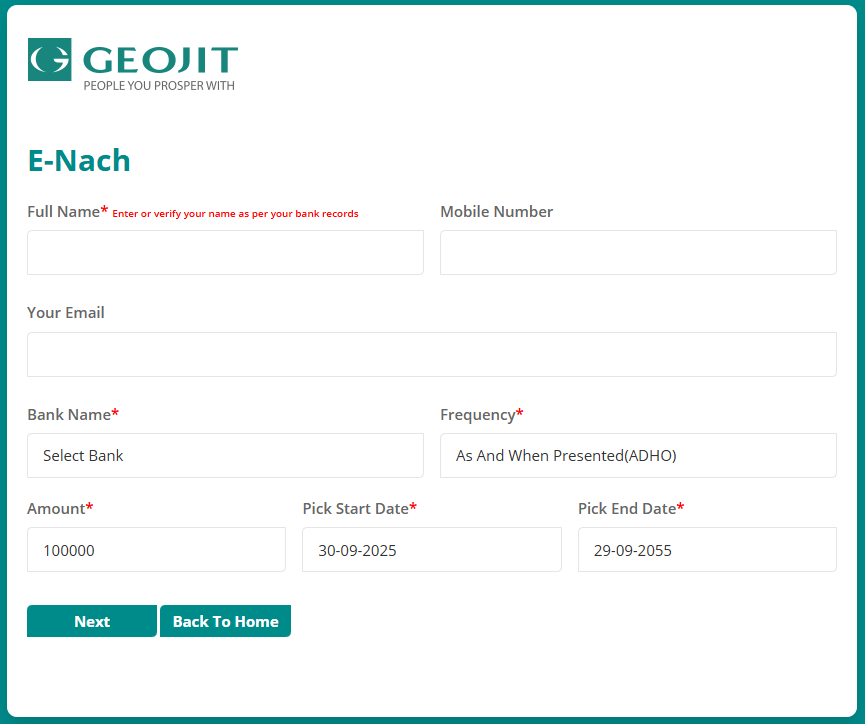 3. You can follow the same steps from Step 3 for “e-NACH registration via MyGeojit” detailed above.